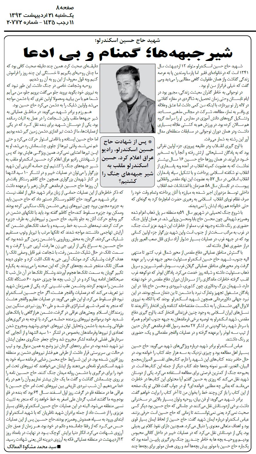 مشخصات شهید