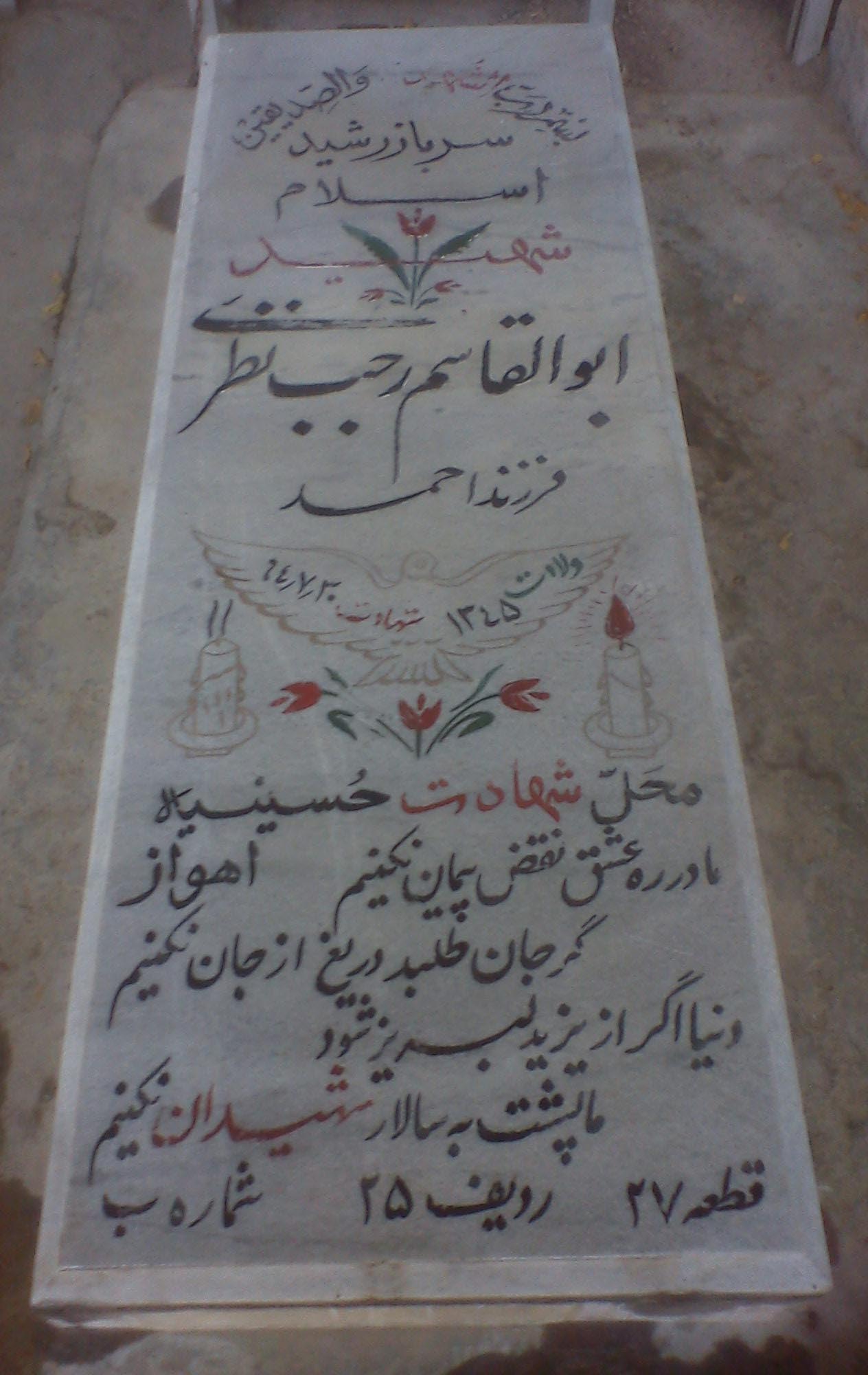 سربازرشید اسلام قاسم رجب نظریبا درود به پیشگاه منجی عالم حضرت مهدی موعود (عج) و نائب بر حقش فرمانده تمامی رزمندگان جان برکف اسلام خمینی کبیر، درود بی کران به روان پاک شهیدان آنانکه چگونه زیستن را به ما آموختن و خود با آوای الله اکبر به لقاءالله پیوستند.